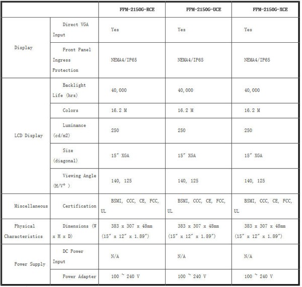 15”工業(yè)平板顯示器FPM-2150G