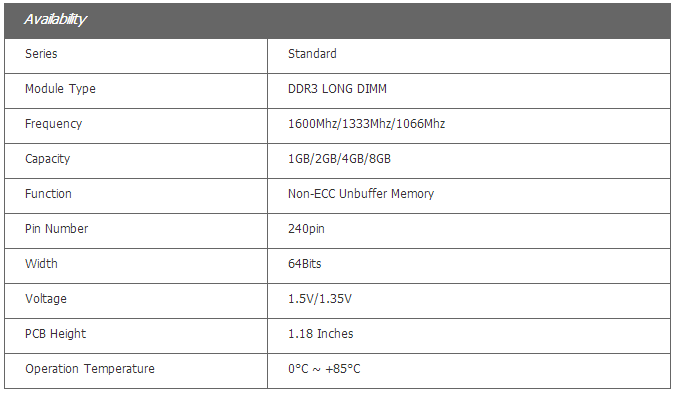 Long-DIMM modules are general DRAM modules meant to be used as standard products for general embedded applications. These modules are compliant with JEDEC standards and available in DDR1, DDR2, and DDR3.