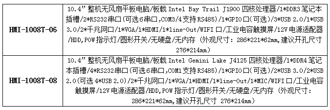 HMI-1008T是一款配置10.4” LCD 液晶屏的低功耗工業(yè)級平板電腦,采用Intel®J1900/J4125四核低功耗處理器,具有豐富的I/O 接口,可廣泛應用于如太陽能光伏設備、煙草物流檢測設備、橡膠機械、測試設備等領域。